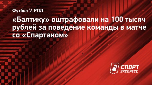 «Балтику» оштрафовали на 100 тысяч рублей за поведение команды в матче со «Спартаком»
