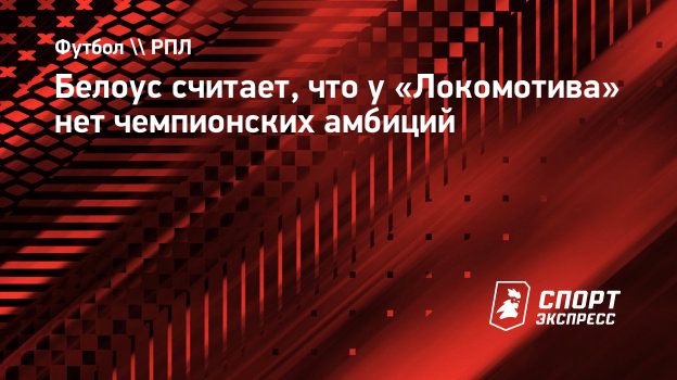 Белоус считает, что у «Локомотива» нет чемпионских амбиций