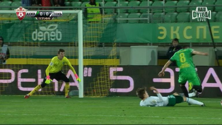 На 18-й минуте матча 25-го тура чемпионата России "Анжи" – "Томь" серьезную ошибку допустил арбитр Владислав Безбородов, не наказавший гостей 11-метровым ударом. В том эпизоде защитник томичей Дмитрий Осипов, пытаясь сыграть в мяч, сбил Арсена Хубулова. За такое нарушение правил следовало назначить пенальти. (Александр БОБРОВ)