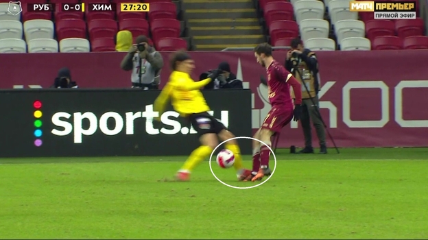 Через девять минут Безбородов использовал принцип преимущества и правильно не вынес предупреждение полузащитнику «Химок» Бесарду Сабовичу.