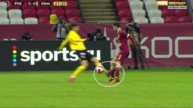 На 27-й минуте матча 23-го тура Тинькофф чемпионата России «Рубин» — «Химки» арбитр Владислав Безбородов ошибочно не вынес предупреждение Илье Кухарчуку. Игрок подмосковной команды совершил безрассудный фол, очень резко пошел в единоборство с Солтмурадом Бакаевым и ударил его шипами в голеностоп.