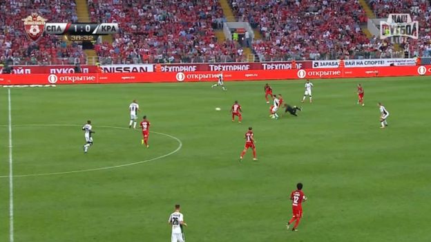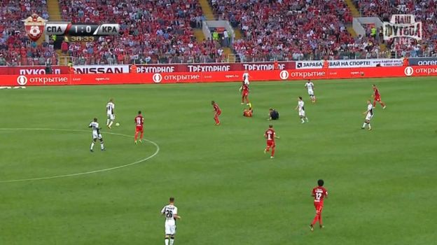 Во время атаки соперника итальянец решил выдвинуться ближе к центру поля, чтобы встретить оппонента, но в это время на его пути встал судья. В итоге Боккетти сбил с ног Лапочкина, после чего и сам оказался на газоне.