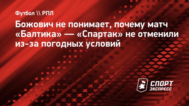 Бывший главный тренер ряда российских клубов Миодраг Божович в комментарии для «СЭ» высказался о погодных условиях в матче 16-го тура РПЛ «Балтика» — «Спартак» (0:2).