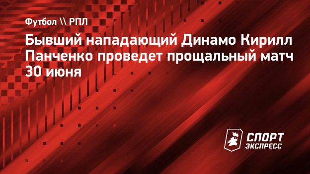 Бывший нападающий московского «Динамо» Кирилл Панченко проведет прощальный матч 30 июня.