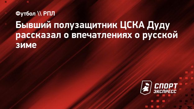 Бывший полузащитник ЦСКА Дуду в интервью «СЭ» рассказал о впечатлениях о русской зиме.