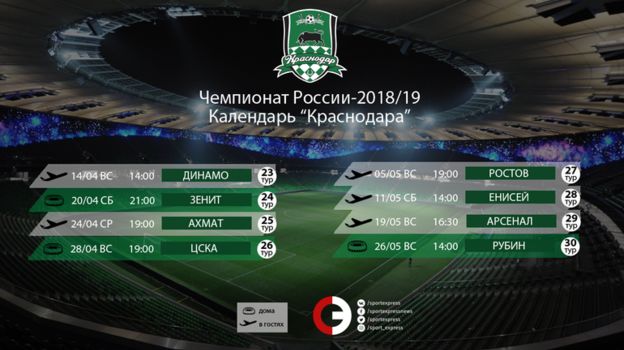 Календарь "Краснодара" в РПЛ с 23-го по 30-й туры. Фото "СЭ"