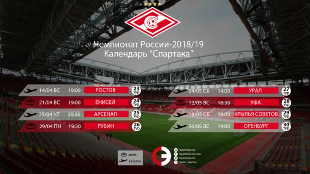 Календарь "Спартака" в РПЛ с 23-го по 30-й туры. Фото "СЭ"