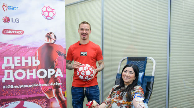 Главный тренер сборной России Станислав Черчесов, защитник "Спартака" Андрей Ещенко, футболистка сборной России и ЦСКА Ксения Коваленко приняли участие в футбольном Дне донора, организованном компанией LG, передает корреспондент "СЭ" Павел ГУРЕВИЧ.