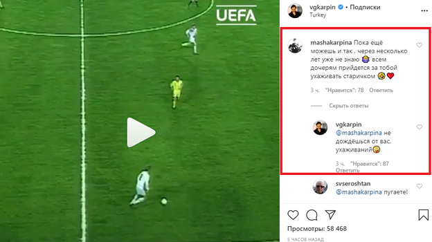 Под новым постом в Instagram главного тренера «Ростова» Валерия Карпина оставила комментарий его 22-летняя дочь Мария. Девушка пошутила над 51-летним российским специалистом.