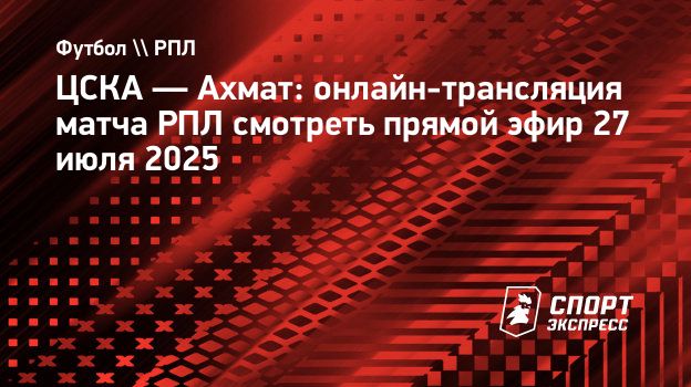 ЦСКА и «Ахмат» сыграют во 2-м туре РПЛ в воскресенье, 27 июля. Матч в Москве на «ВЭБ Арене» начинается в 15.00 по московскому времени.