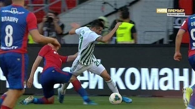 На 59-й минуте матча 7-го тура чемпионата России ЦСКА — «Ахмат» ошибся арбитр Василий Казарцев, не назначивший пенальти.