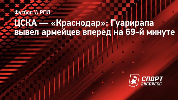 ЦСКА — «Краснодар»: Гуарирапа вывел армейцев вперед на 69-й минуте