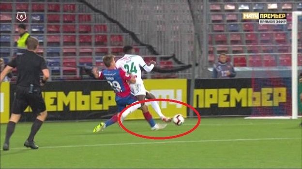 На 9-й минуте матча 10-го тура чемпионата России ЦСКА - "Локомотив" в штрафной площади хозяев поля в единоборстве с Бийолом упал Эдер, требовавший назначить пенальти. Арбитр Алексей Матюнин эти требования не удовлетворил и продолжил игру.