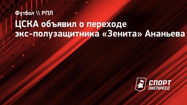 ЦСКА объявил о переходе экс-полузащитника «Зенита» Ананьева