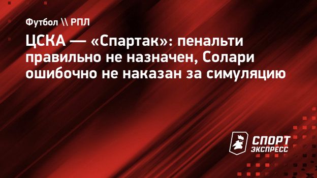 ЦСКА — «Спартак»: пенальти правильно не назначен, Солари ошибочно не наказан за симуляцию