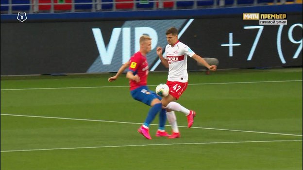 В том моменте Роман Зобнин требовал пенальти, считая, что Хердур Магнуссон сбил его. В штрафной площади армейцев действительно случился контакт правой ноги полузащитника ЦСКА с правой ногой соперника. Но рефери решили, что он не был причиной падения спартаковца и не должен рассматриваться как нарушение правил. (Александр Бобров)