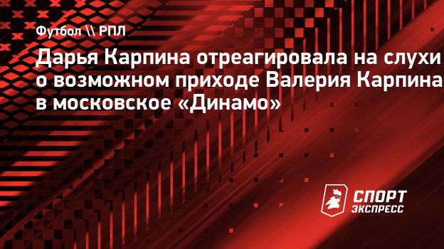 Супруга главного тренера сборной России Валерия Карпина Дарья Карпина отреагировала на слухи о возможном приходе мужа в московское «Динамо».
