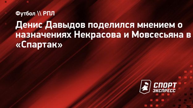Бывший нападающий «Спартака» Денис Давыдов поделился с «СЭ» мнением о назначениях Сергея Некрасова и Андрея Мовсесьяна в клуб.