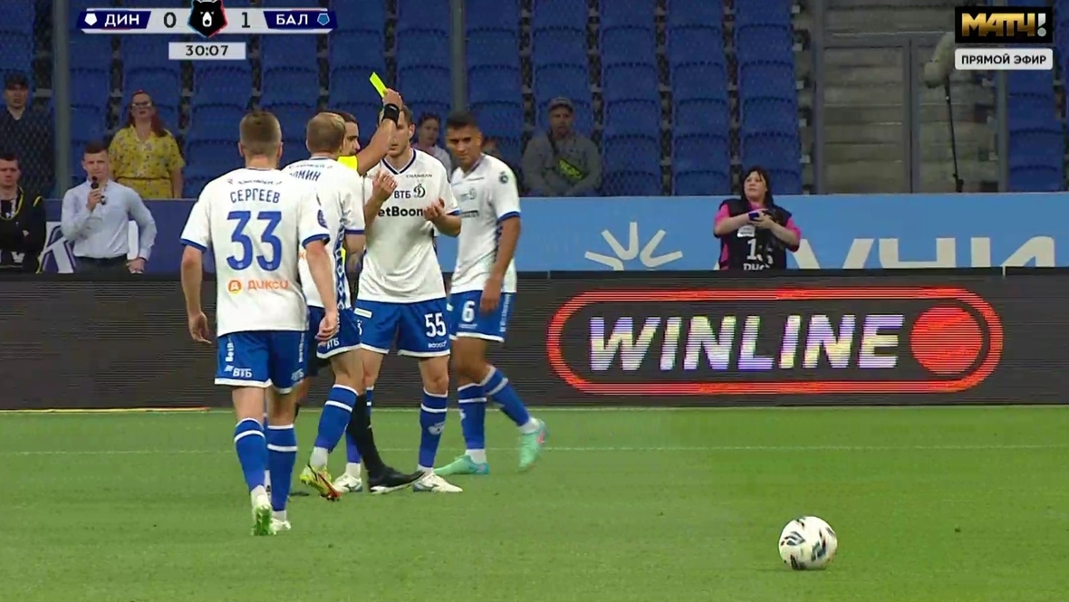 На 31-й минуте матча 1-го тура чемпионата России «Динамо» — «Балтика» (1:1) судья Ян Бобровский вынес предупреждение Максиму Осипенко, однако в протоколе игры значится, что желтую карточку за грубую игру получил Даниил Фомин.