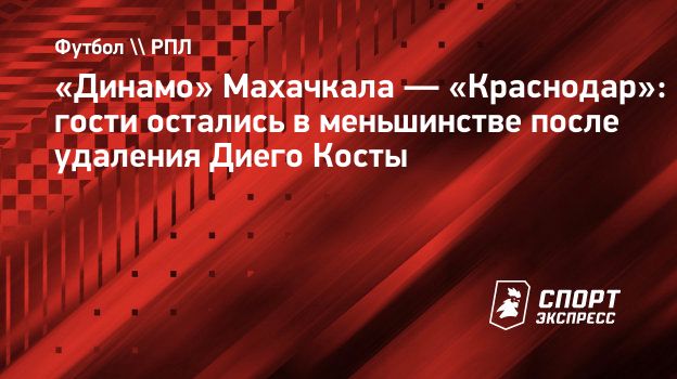 «Динамо» Махачкала — «Краснодар»: гости остались в меньшинстве после удаления Диего Косты