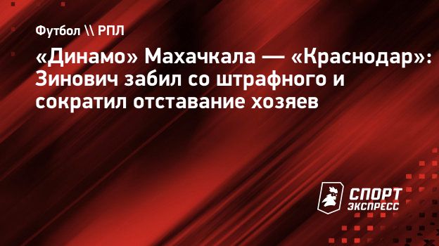 «Динамо» Махачкала — «Краснодар»: Зинович забил со штрафного и сократил отставание хозяев
