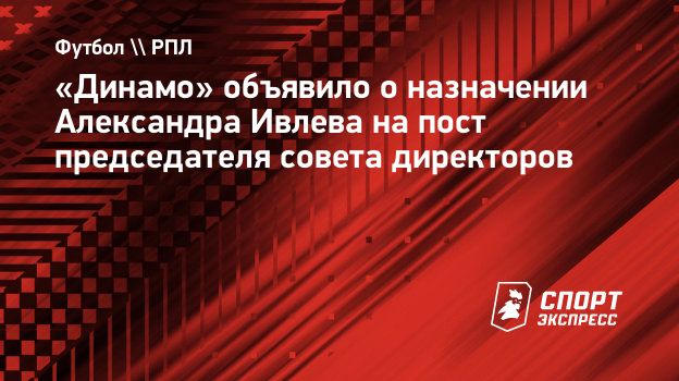 «Динамо» объявило о назначении Александра Ивлева на пост председателя совета директоров