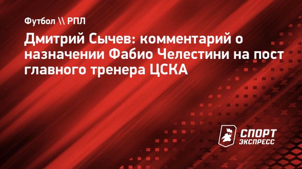 Бывший футболист «Марселя» и «Локомотива» Дмитрий Сычев прокомментировал «СЭ» назначение Фабио Челестини на пост главного тренера ЦСКА.