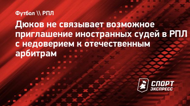 Президент Российского футбольного союза (РФС) Александр Дюков в разговоре с «СЭ» рассказал о потенциальной работе иностранных судей в РПЛ.