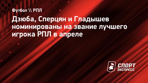 Дзюба, Сперцян и Гладышев номинированы на звание лучшего игрока РПЛ в апреле