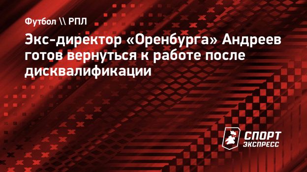 Экс-директор «Оренбурга» Андреев готов вернуться к работе после дисквалификации