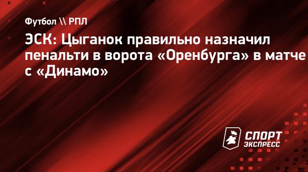 ЭСК: Цыганок правильно назначил пенальти в ворота «Оренбурга» в матче с «Динамо»