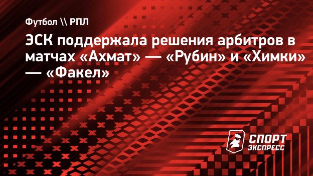 ЭСК поддержала решения арбитров в матчах «Ахмат» — «Рубин» и «Химки» — «Факел»
