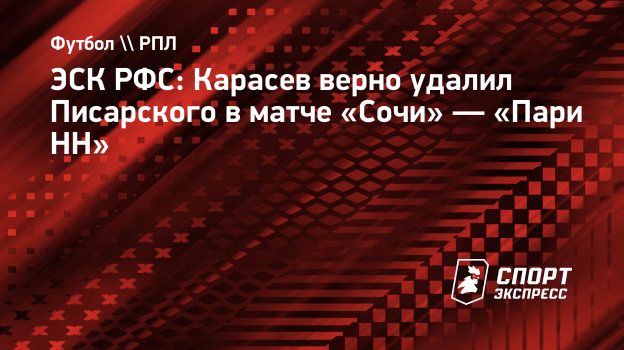 ЭСК РФС: Карасев верно удалил Писарского в матче «Сочи» — «Пари НН»