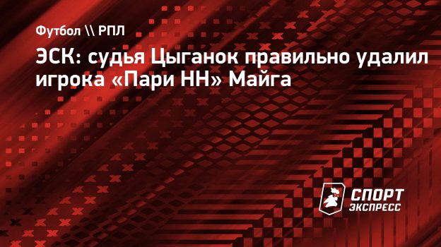 На 11-й минуте Цыганок удалил с поля полузащитника «Пари НН» Мамаду Майга. Единогласно ЭСК поддержала это решение, отметив, что оно было правильным.
