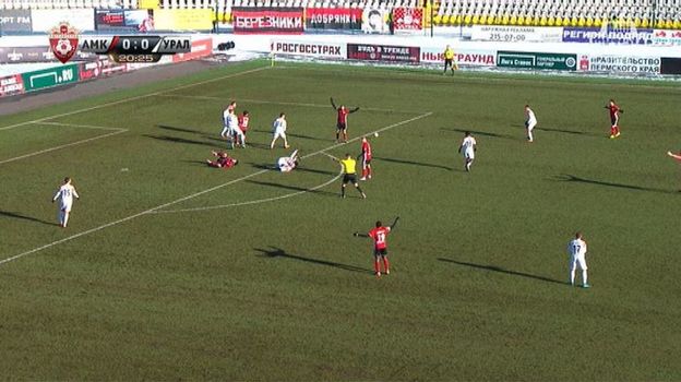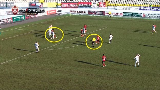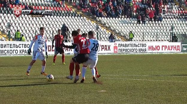 На 21-й минуте матча 15-го тура чемпионата России "Амкар" – "Урал" (1:1) ошибся арбитр Игорь Федотов, назначив пенальти в ворота гостей. Судье показалось, что Никита Чернов сфолил на Михаиле Костюкове. На самом же деле защитник "Урала" сыграл в мяч, а через мгновение получил удар по левому голеностопу, на который поставил свою ногу полузащитник "Амкара". (Александр БОБРОВ)