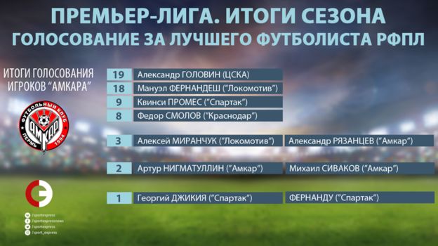 "Амкар" поставил Головина первым, Смолова – только четвертым (после Фернандеша и Промеса).