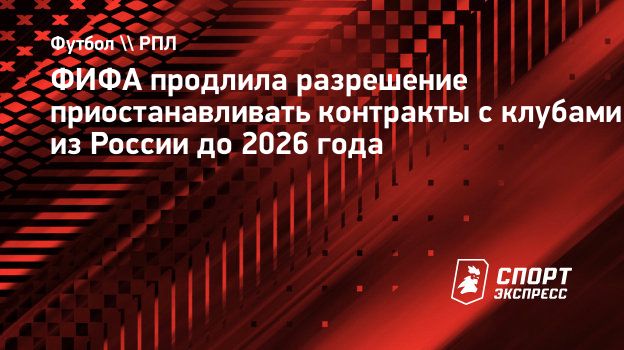 Бюро совета Международной федерации футбола (ФИФА) приняло решение продлить разрешение для иностранных игроков и тренеров приостанавливать контракты с российскими и украинскими клубами. Оно будет действовать до 30 июня 2026 года.