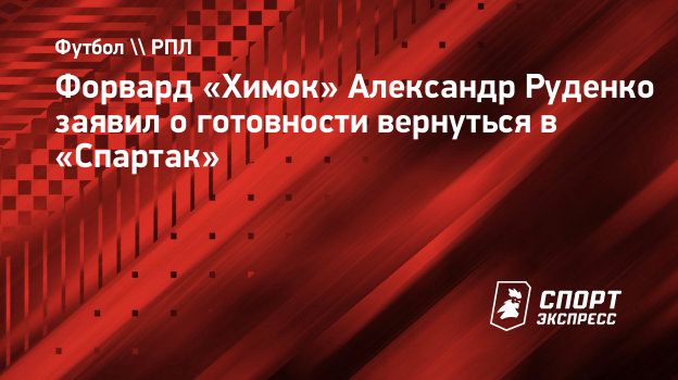Нападающий «Химок» Александр Руденко в интервью «СЭ» рассказал о своем отношении к «Спартаку».
