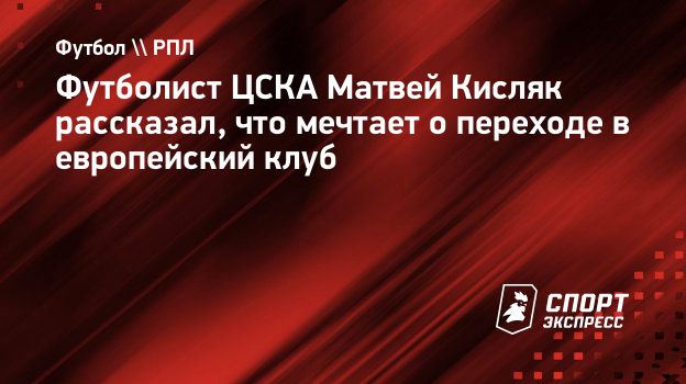 Полузащитник ЦСКА и сборной России Матвей Кисляк признался, что мечтает о переходе в европейский клуб.