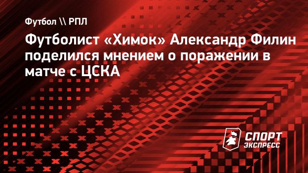 Футболист «Химок» Александр Филин поделился мнением о поражении в матче с ЦСКА (0:1) в 20-м туре РПЛ.