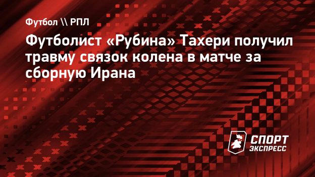 «Касра Тахери получил травму связок колена в матче сборной Ирана. В ближайшее время игрока ждет операция. Желаем Касре скорейшего выздоровления и возвращения в строй. Возвращайся более сильным!» — говорится в сообщении «Рубина».