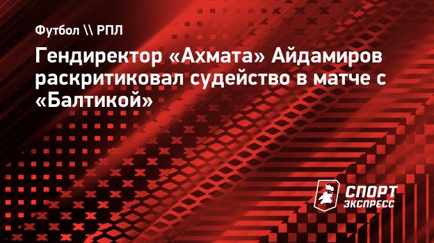 Генеральный директор «Ахмата» Ахмед Айдамиров в разговоре с «СЭ» прокомментировал судейство в матче 14-го тура РПЛ против «Балтики» (0:2).