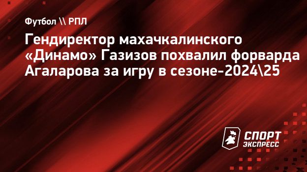 Генеральный директор махачкалинского «Динамо» Шамиль Газизов в комментарии для «СЭ» оценил игру нападающего Гамида Агаларова в сезоне-2024/25.