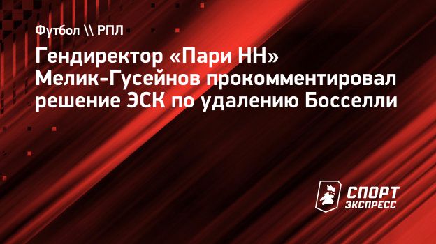 Гендиректор «Пари НН» Мелик-Гусейнов прокомментировал решение ЭСК по удалению Босселли