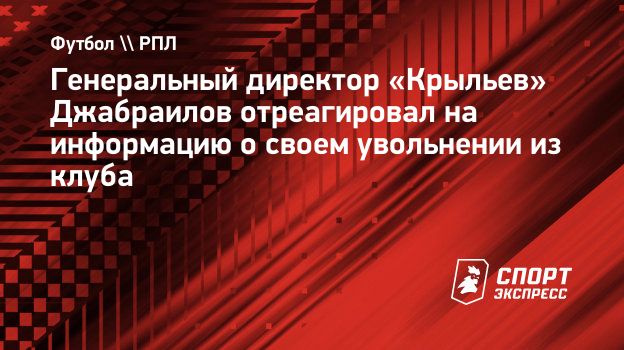 Генеральный директор «Крыльев Советов» Тархан Джабраилов в разговоре с «СЭ» прокомментировал информацию о своем увольнении из самарского клуба.