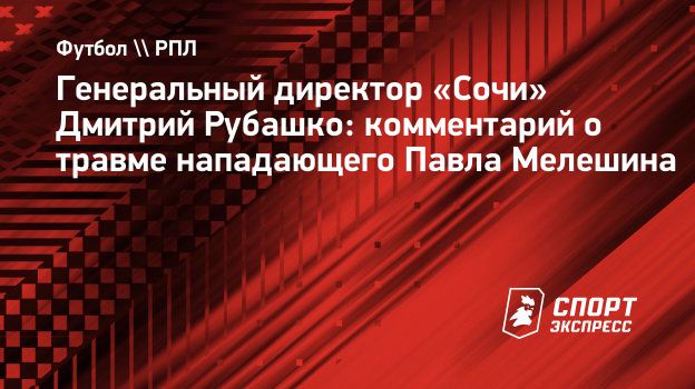Генеральный директор «Сочи» Дмитрий Рубашко в комментарии для «СЭ» высказался о травме нападающего команды Павла Мелешина.