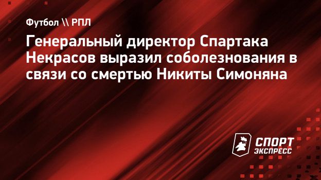 Генеральный директор «Спартака» Сергей Некрасов выразил соболезнования в связи со смертью лучшего бомбардира в истории красно-белых Никиты Симоняна.