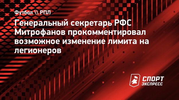 Ранее министр спорта РФ Дегтярев объявил, что к 2028 году лимит на легионеров в РПЛ будет ужесточен. На смену текущему лимиту «13 легионеров в заявке на сезон и 8 одновременно на поле» в несколько этапов придет новый — «10 легионеров в заявке на сезон и 5 одновременно на поле».
