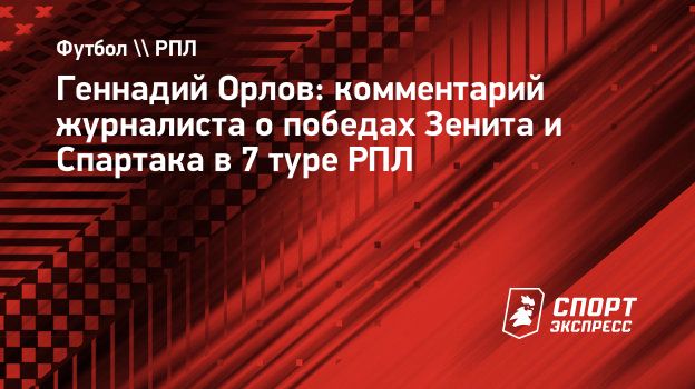 Комментатор Геннадий Орлов поделился с «СЭ» мнением о победах «Зенита» над «Пари НН» (2:0) и «Спартака» над «Сочи» (2:1) в матче 7-го тура РПЛ.
