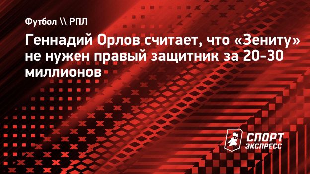 Комментатор Геннадий Орлов в интервью «СЭ» поделился мнением о том, что «Зениту» не стоит покупать за большие деньги правого защитника.